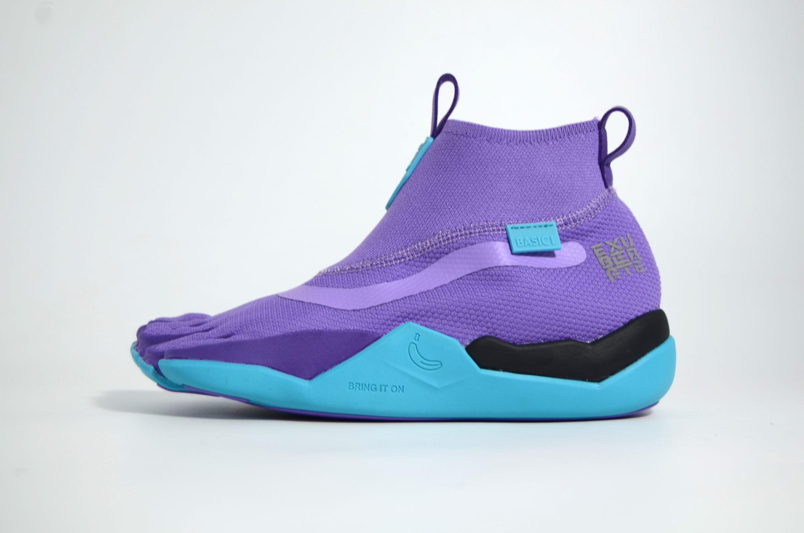 The exuberate BASICs are designed to replicate the experience, movement, and action of exercising or performing activities barefoot, while still offering the key benefits of modern athletic footwear, such as protection, traction, cushioning, and durability. The shoes specifically aim to deliver a natural, barefoot-like feel. By keeping the foot closer to the ground, it creates a sensation that closely mimics being truly shoeless. This design encourages a stronger connection to the surrounding environment and allows for more freedom of movement, not just for the foot as a whole, but for the toes individually as well.